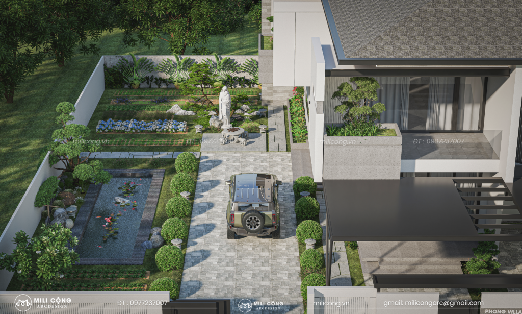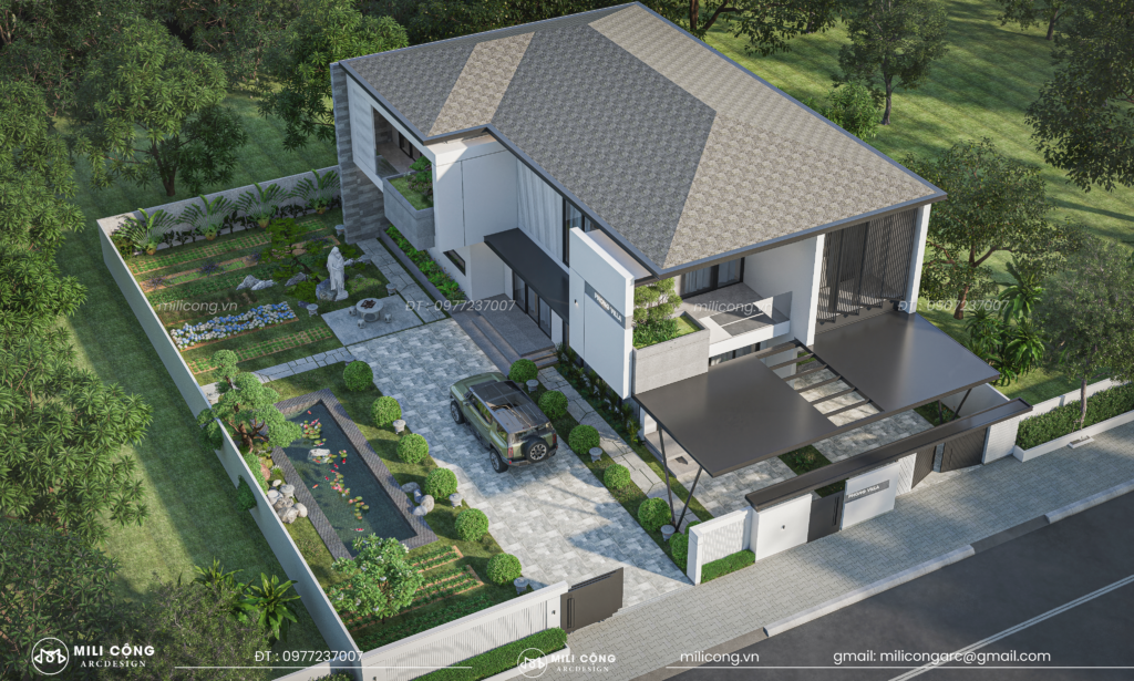 Tổng thể công trình được MILI CỘNG hướng đến việc tạo nên một không gian sống tiện nghi, gần gũi với thiên nhiên và phù hợp với nhu cầu sinh hoạt của gia đình hiện đại.