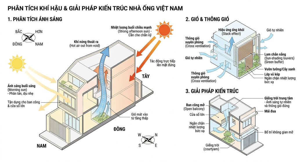 Ví dụ : trong thực tế, nhiều ngôi nhà phố tại các đô thị Việt Nam nếu được thiết kế tốt về hướng gió và thông tầng, không chỉ giúp không gian mát mẻ hơn mà còn tiết kiệm đáng kể chi phí điện năng cho điều hòa và chiếu sáng.